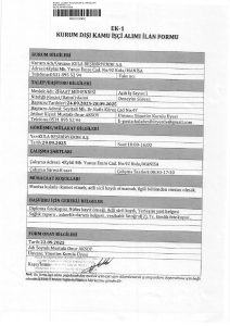 Beşibiryerde A.Ş., Manisa Kula’daki tesislerinde görevlendirmek üzere 2 adet işçi alımı yapacaktır. Alınacak işçilerin görev tanımları ve nitelikleri aşağıda belirtilmiştir.